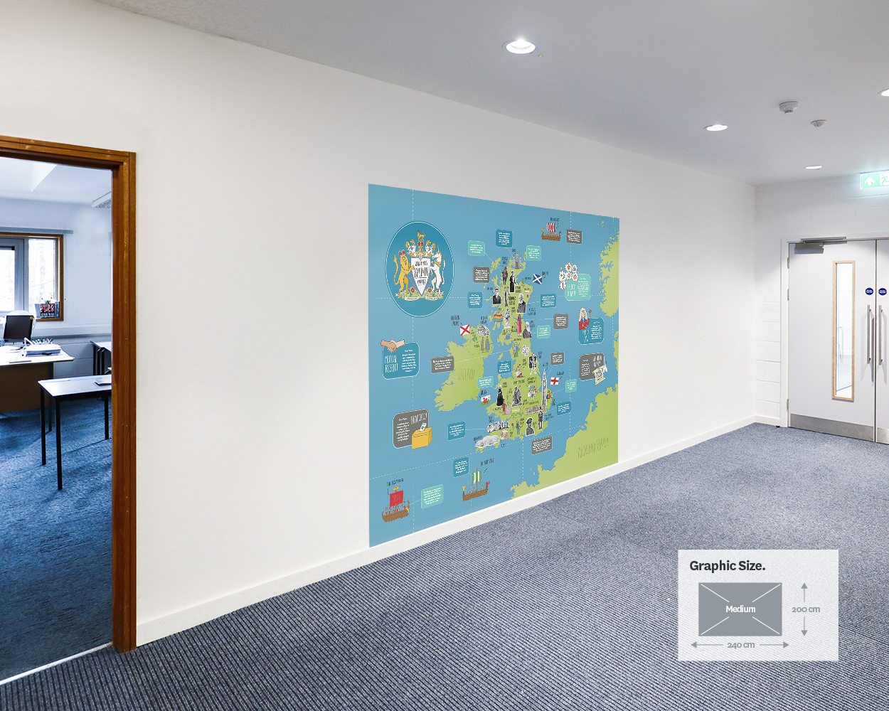 This product is printed to order on our Premium Tuffwall Wallpaper, which is an extra-thick, textured product that is perfect for use in schools and will even cover most small blemishes and small holes. This robust material is ideal for high-traffic areas, such as corridors, halls and classrooms. Use the complimentary bottle of cleaning fluid included with this product to keep it looking great!