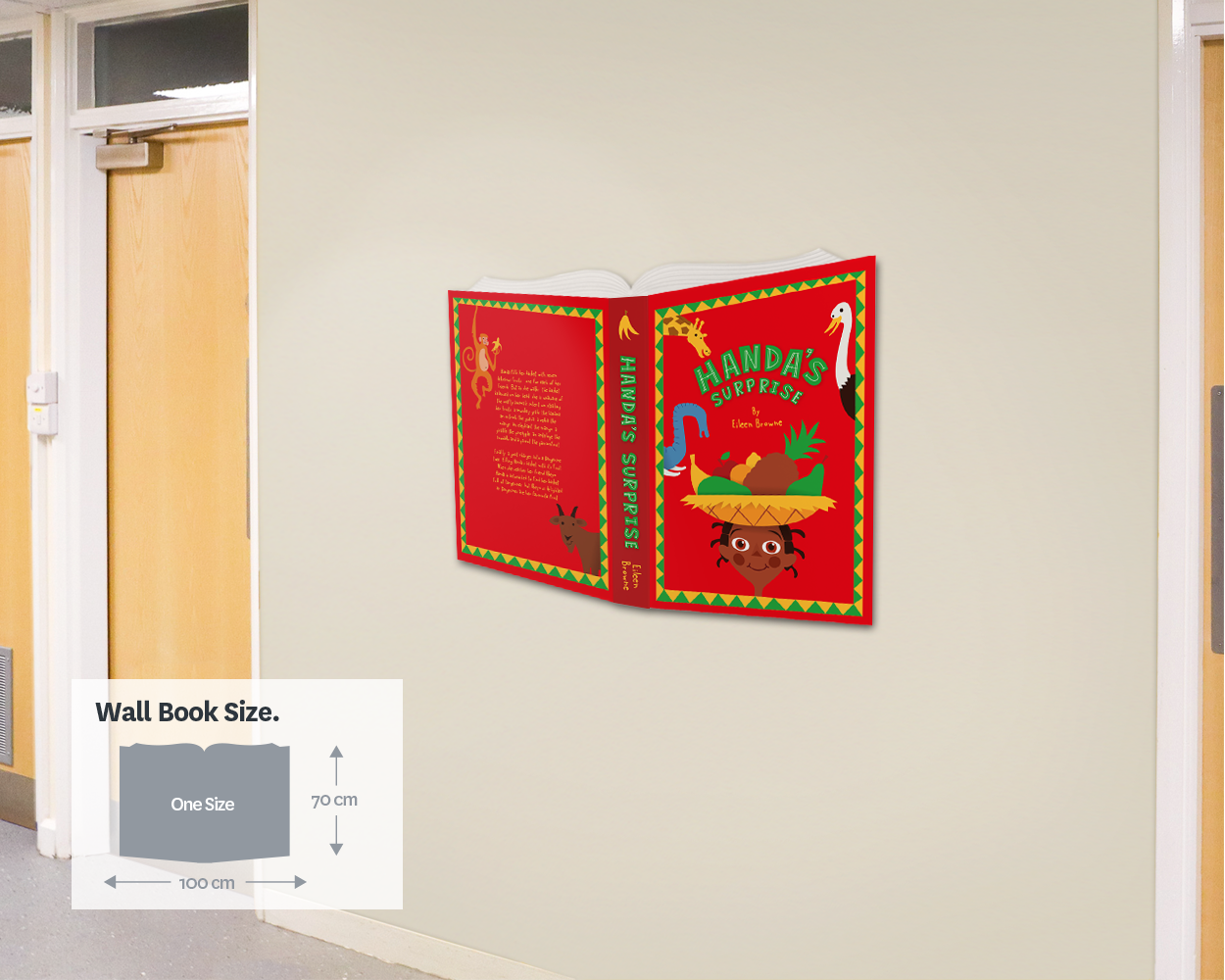 Introducing a beautiful 3D representation of Handa's Surprise - an impressive book that stands out from the wall! Its multi-layered pages, cover and spine will make for an awe-inspiring design to your home or office.